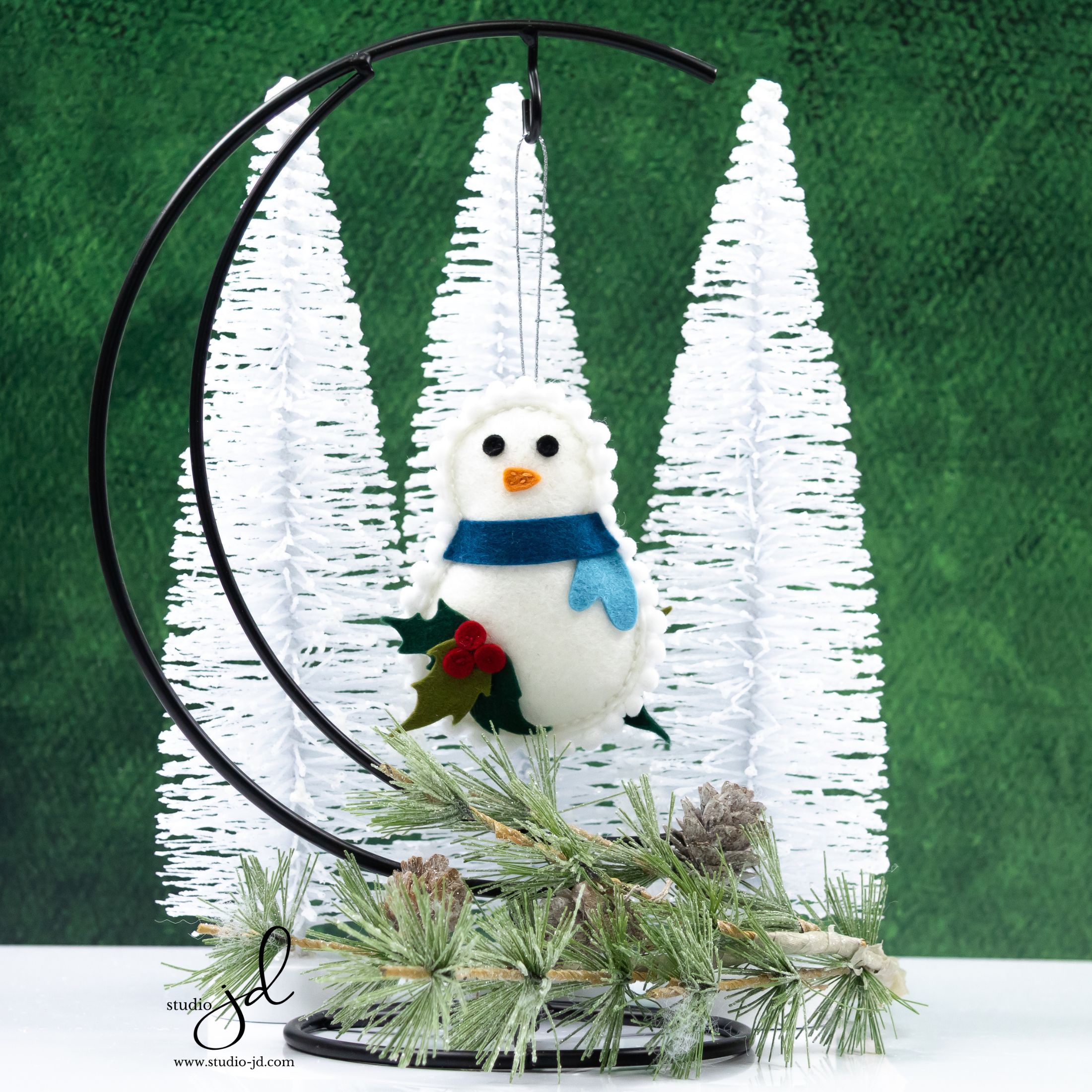 I took a break from paper this week and brought out the felt instead! This little snowman ornament was created using the Stitching Snowman dies from Simon Says Stamp. The dies cut through felt beautifully and provide stitching holes that double as the perfect guide for hand-stitching.