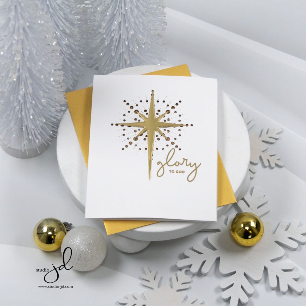 Light has a way of capturing attention, especially during the holidays. I wanted this card to feel luminous and full of quiet energy, like the moment a single star shines brightest in the night sky. The new Radiant Burst die from the Simon Says Stamp DieCember® release made that vision come to life.