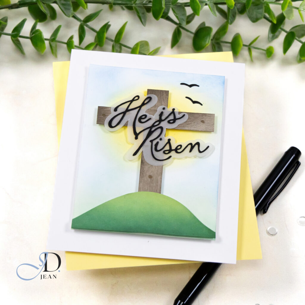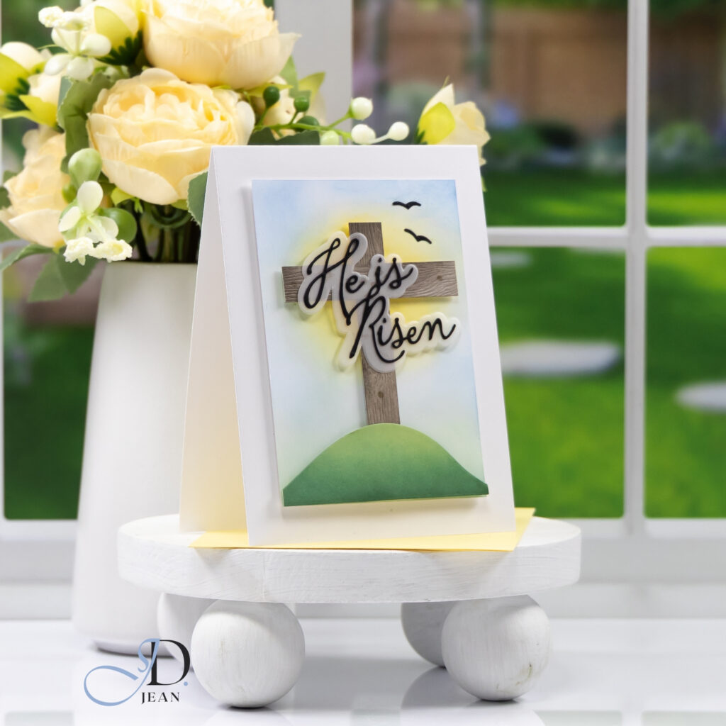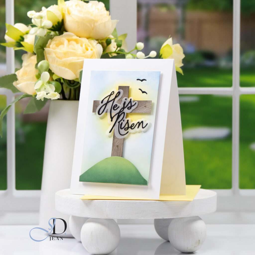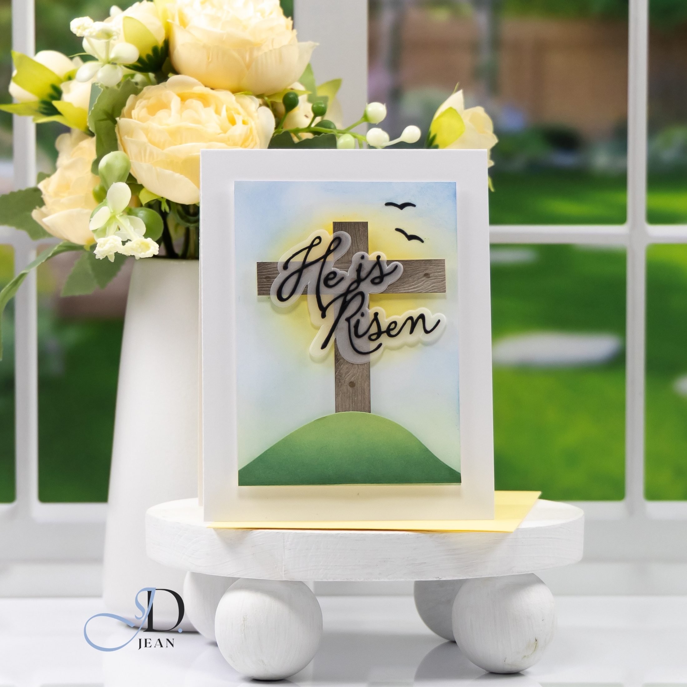 For this card, my goal was to create a peaceful Easter design where the symbolism could remain the clear focal point. As I started working through the layout, it became clear that keeping the surrounding elements simple would allow the cross and sentiment to carry the message of the design.