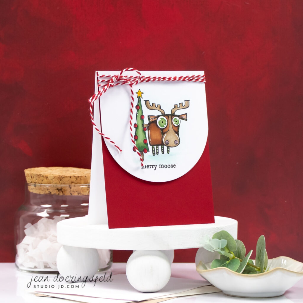 Holiday cheer looks a little more wide-eyed this week! For today’s Guest Design project with AALL & Create, I couldn’t resist this delightfully quirky moose. He’s standing tall beside a perfectly decorated tree, ready to wish everyone a “merry moose” kind of season.