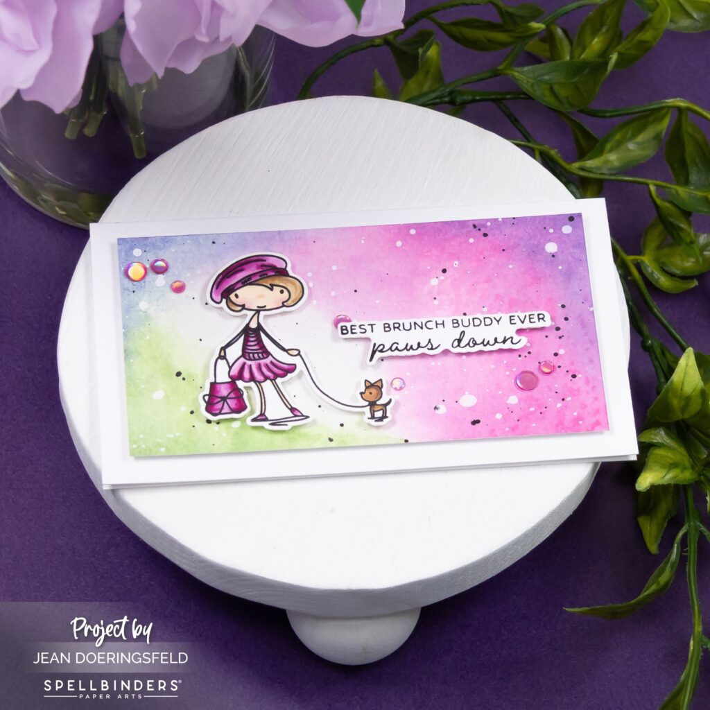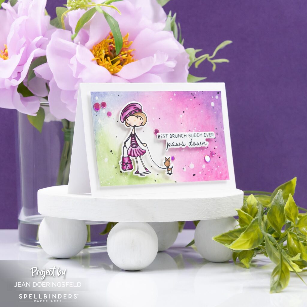 Some stamp sets just capture your heart, and this one easily tops my list. The November Stamp and Die of the Month from Spellbinders might be my favorite set of the year. The stylish girl and her tiny companion bring so much personality that it was impossible not to smile the entire time I was coloring them.