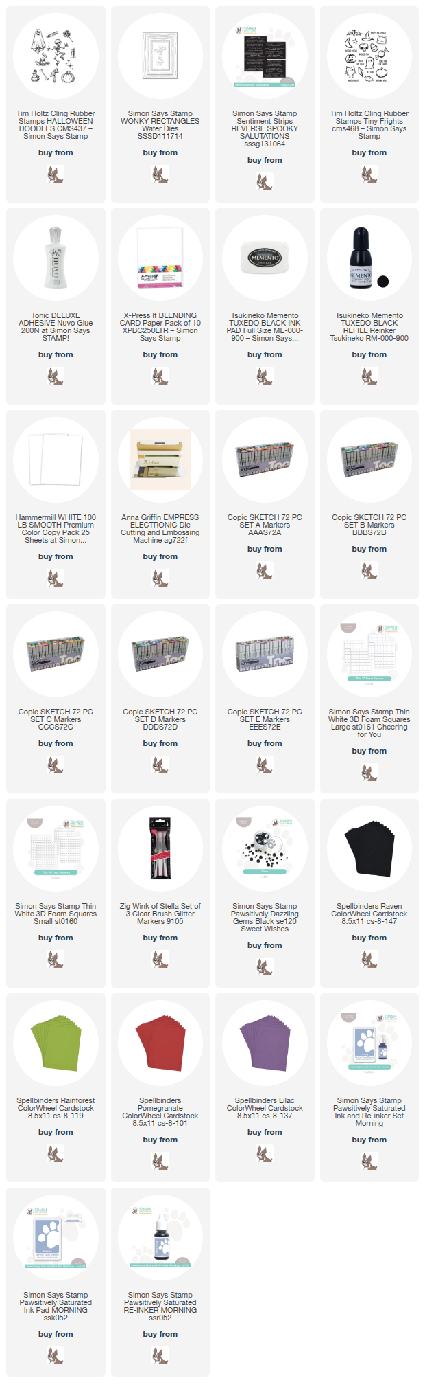 We’re nearing the end of the series, and Card #6 is here to stir the potion! This design brings us back to the Tim Holtz Halloween Doodles stamp set and the new coordinating dies from Simon Says. This time I paired those quirky little images with bold color and a sentiment that totally cracks me up: “I’m just here for the boos.”🍷👻