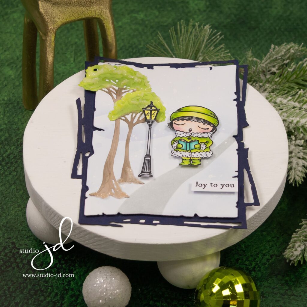 There’s a certain kind of quiet that only exists in winter — that soft stillness when the world feels calm and everything glows a little brighter under the snow. I wanted to capture that feeling in this design featuring AALL & Create products. The little caroler, bundled in cheerful green, feels like the kind of character who’d brave the chill just to spread a bit of joy.