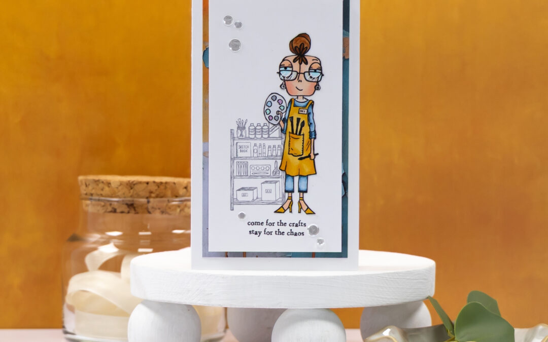 I trimmed the panel by ¼ of an inch on all sides and added a sentiment with foam tape before adding it to a card front.