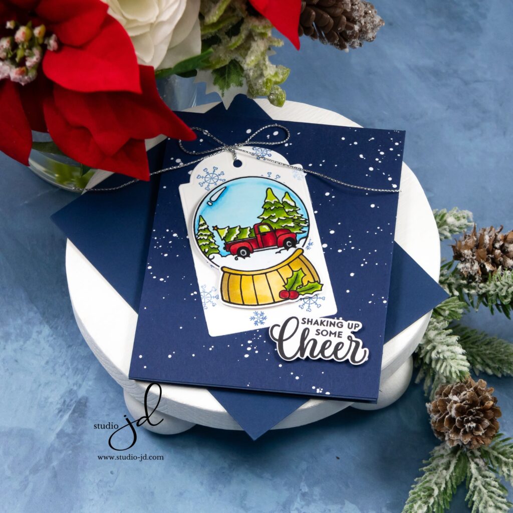 Shake it up! ❄️🎄 I had so much fun creating this festive card for the STAMPtember® collaboration between Simon Says Stamp and Dare 2B Artzy. Snow globes have such a magical feel, and this one is packed with cheerful holiday details that will make you smile.