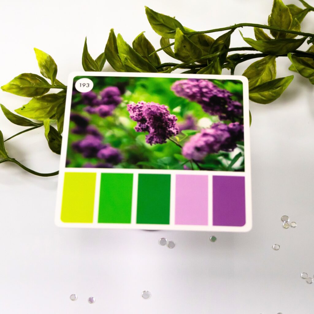 The palette itself leans into fresh greens paired with soft lilac and deeper purple tones. My goal was to keep that balance intact while allowing each technique to interpret the colors in its own way, rather than forcing a perfect match.