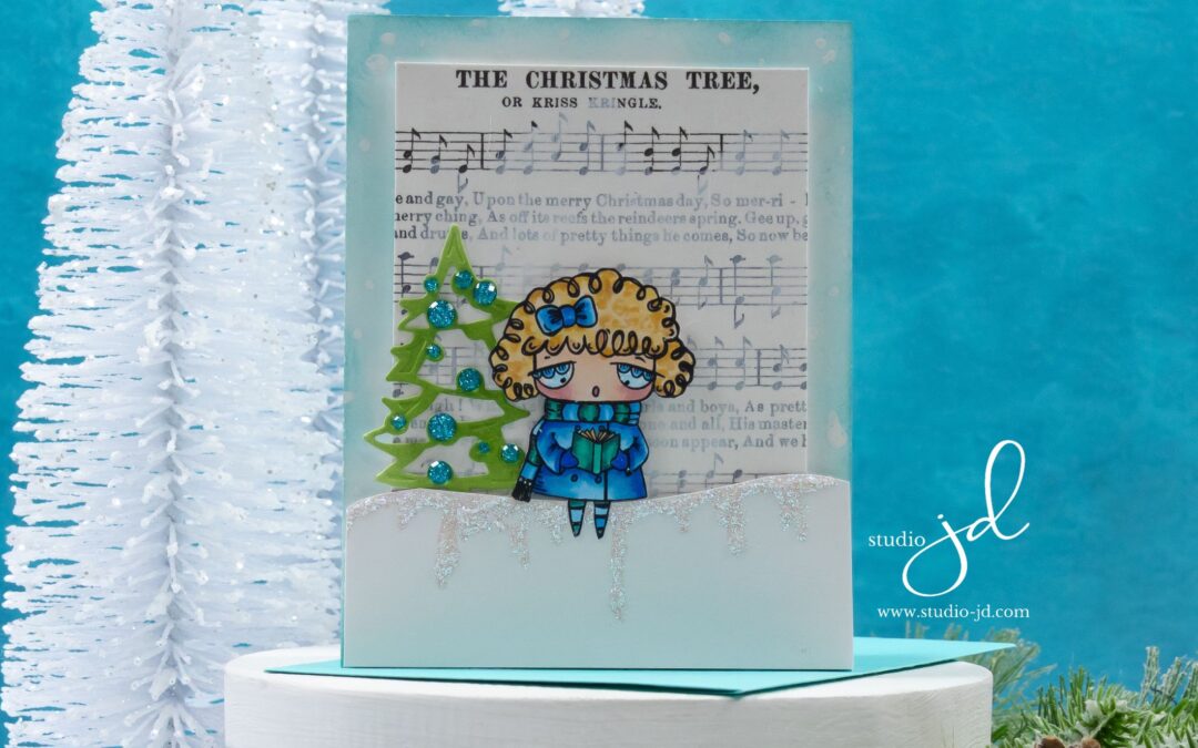 I die cut a smaller panel with a stitched rectangle die, figured out how I wanted the wreath, then cut the wreath almost perfectly in half to fit the stitched panel. I adhered it to the stitched panel with foam adhesive and then adhered the whole panel to a card base with more foam adhesive. There’s lots of dimension on this card, that’s for sure!
