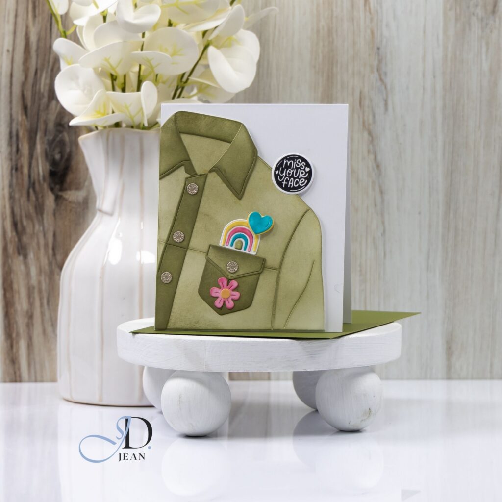 The die-cut shirt becomes the foundation of the composition while the pocket creates a natural focal point. Placing the rainbow and heart partially inside the pocket helps build a sense of depth and playfulness.